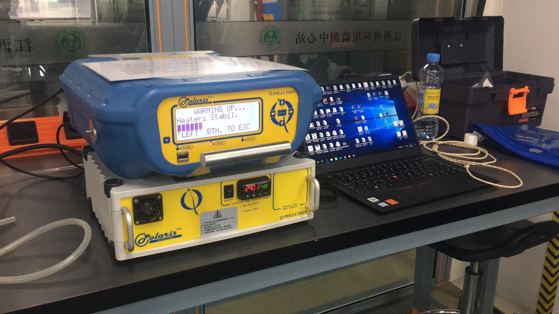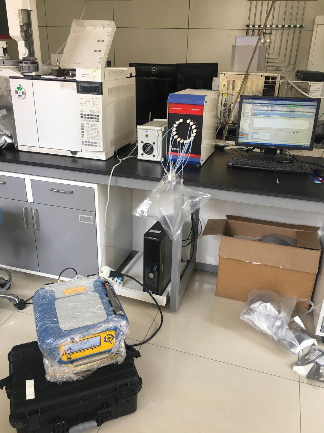 山東省站測試現場(圖中電腦旁邊是我公司代理的APK2600氣袋自動進樣器,現服務于山東省站實驗室)