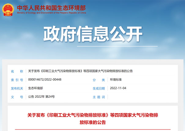 《印刷工業(yè)大氣污染物排放標(biāo)準(zhǔn)》(GB41616-2022),規(guī)定了印刷工業(yè)大氣污染物排放控制要求、監(jiān)測(cè)和監(jiān)督管理要求。